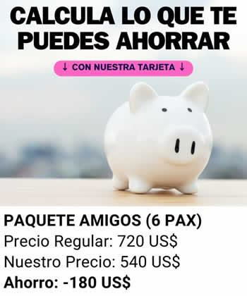 Si son un grupo de hasta 8 amigos, deberán comprar una tarjeta PAQUETE AMIGOS.