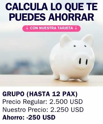 Por ejemplo, si son de 9 a 12 personas deberán comprar una tarjeta PAQUETE GRUPO.